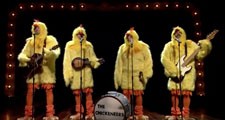 Even though it’s after Easter and this performance was in celebration of that holiday, there’s never a bad time to watch Jimmy Fallon, Nick Offerman (Parks & Recreation), and Blake Shelton dress up in big yellow chicken costumes and cluck their way through The Lumineers’ “Ho Hey” as The Chickeneers. The only way this could have possibly been any better is if one had actually been shown laying an egg onstage.