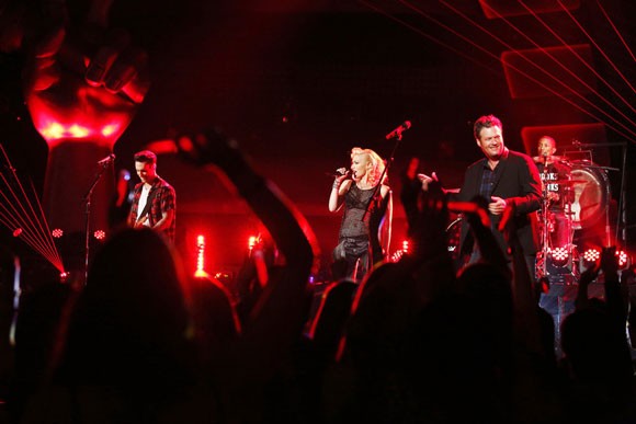Season seven of NBC’s singing competition series The Voice kicked off with a performance by veteran coaches Adam Levine and Blake Shelton along with The Voice newbies Pharrell Williams and Gwen Stefani. The foursome teamed up to sing No Doubt’s “Hella Good” which was released back in 2002 and was co-written by Stefani, Pharrell, and Tony Kanal, and is one of No Doubt’s biggest singles of their career.