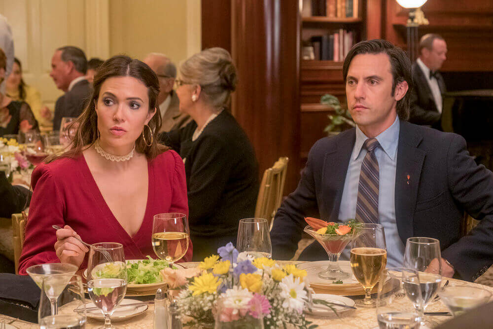 The cast of the award-winning tear-jerking non-linear drama is led by Milo Ventimiglia and Mandy Moore as Jack and Rebecca Pearson. Sterling K. Brown, Chrissy Metz, and Justin Hartley star as Randall, Kate, and Kevin. Susan Kelechi Watson is Beth Pearson, Chris Sullivan is Toby Damon, Eris Baker is Tess Pearson, and Faithe Herman plays Annie Pearson.