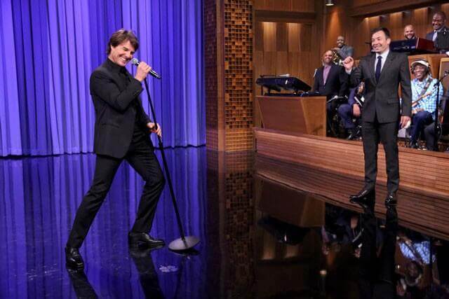 Cruise then does a slide across the floor a la Risky Business, but it’s just a tease. Instead of “Old Time Rock and Roll,” Cruise performs a duet with himself on Meatloaf’s “Paradise by the Dashboard Light.” Fallon concedes the win to Cruise, and they team up to close out the battle with “You’ve Lost That Lovin’ Feeling” from Cruise’s Top Gun.