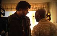 The fifth season of HBO’s sexy vampire series True Blood doesn’t premiere until June 10th, however the network’s parceling out clips just to make us squirm with anticipation. The latest video is a behind the scenes look at a scene with Alcide (Joe Manganiello), Sookie (Anna Paquin), and Lafayette (Nelsan Ellis). Alcide lets Sookie know she’s still in trouble with Russell Edgington (Dennis O’Hare) while Lafayette tells Alcide they’re done with this supernatural stuff. The scene’s high point: Alcide growling at Lafayette.