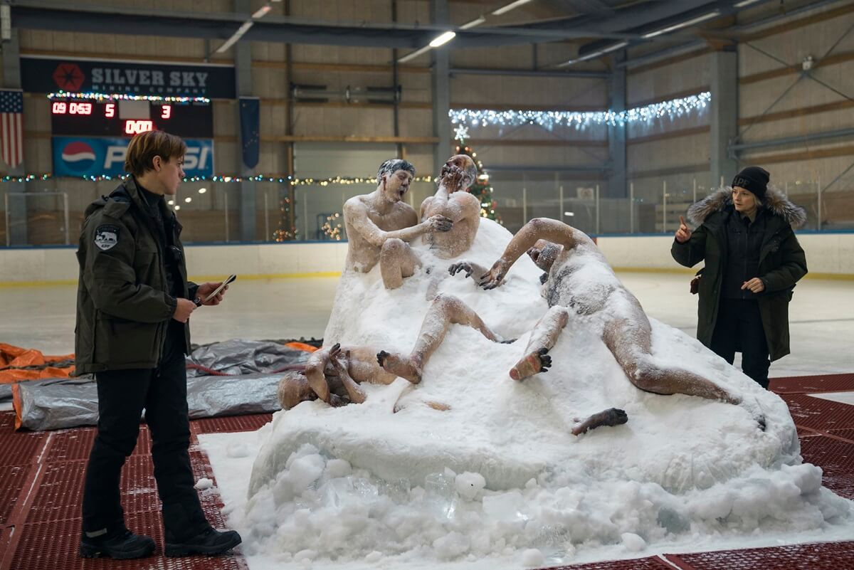 Danvers finds a symbol on one of the victims’ heads. She originally planned to turn the case over to Anchorage to investigate because it’s too big for their small department, but she’s changed her mind and wants to keep it. Danvers reminds everyone at the crime scene to be professional and at least act like they know how to behave.