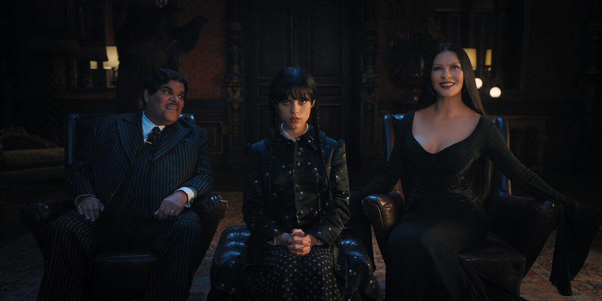Guest stars include Catherine Zeta-Jones as Addams family matriarch Morticia and Luis Guzmán as Gomez Addams. Isaac Ordonez plays Pugsley Addams, Iman Marson is Lucas Walker, and Lucius Hoyos is Young Gomez.